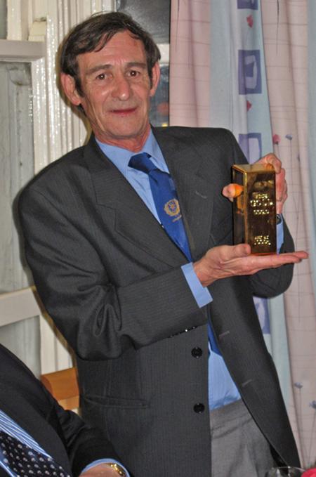 John Mottram with his gold ingot as a reward for his hard work!